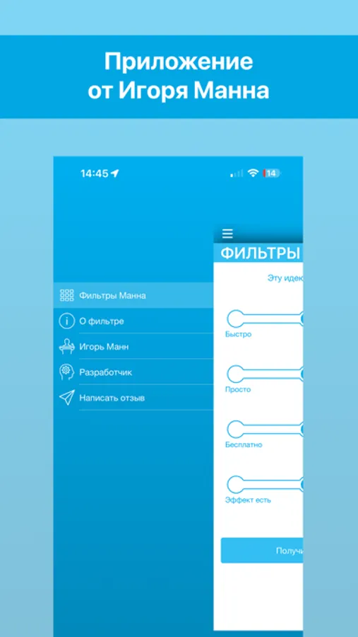 Скачайте и пользуйтесь «Фильтры Манна» - приложение от Игоря Манна.