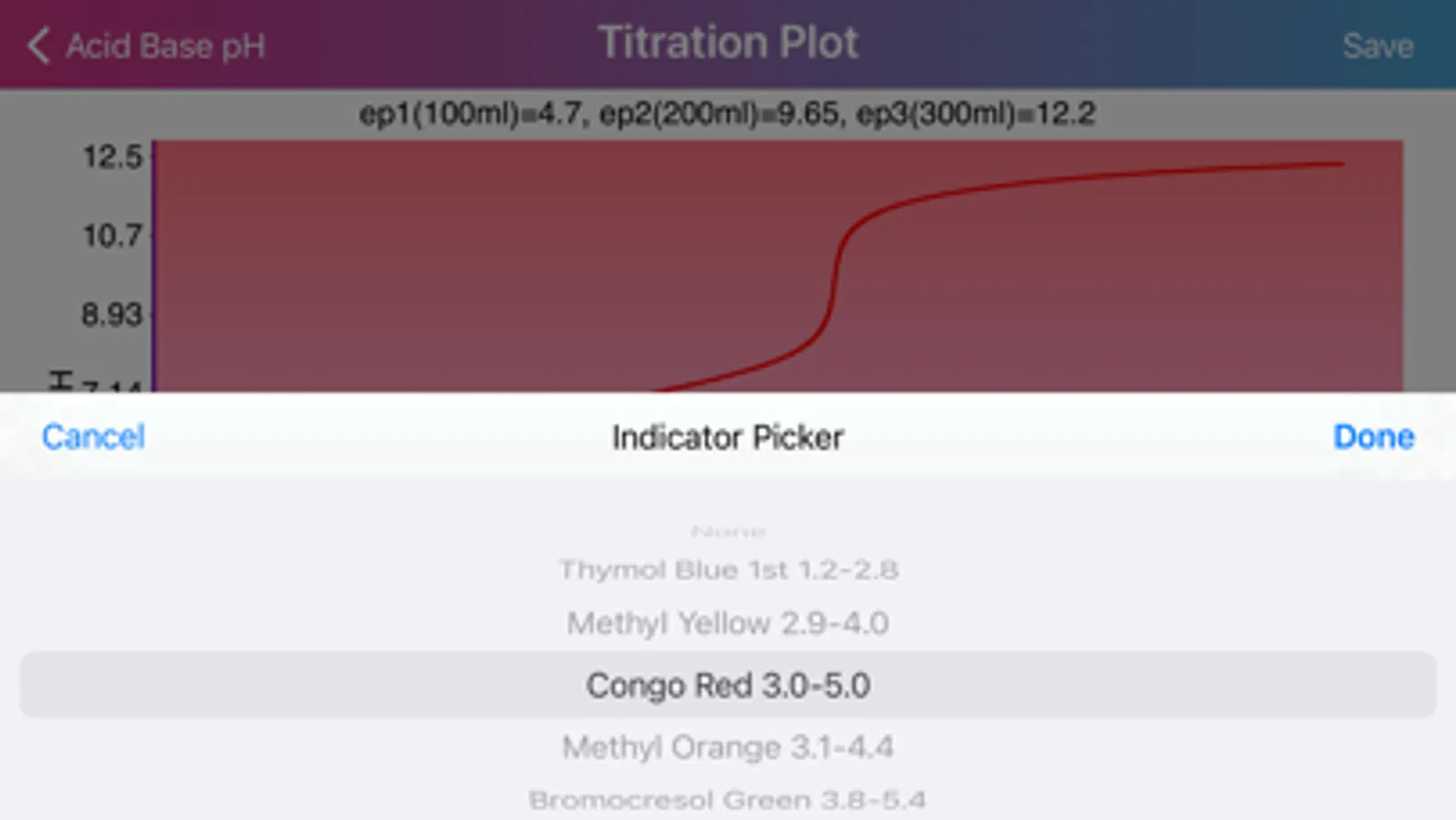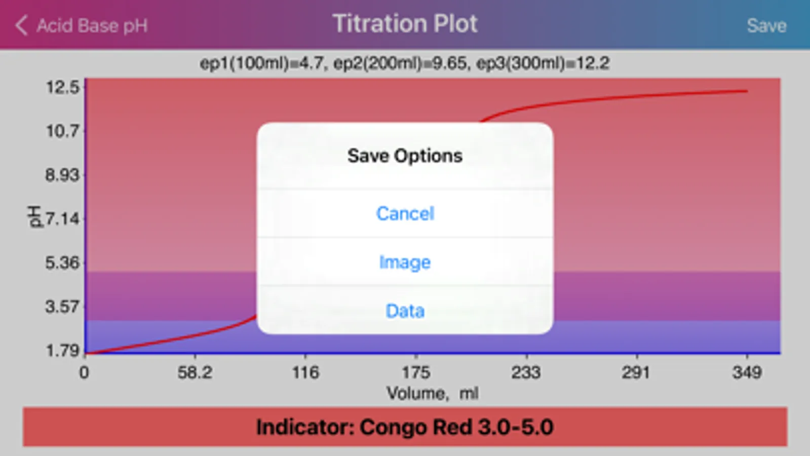 ·Application can plot titration curve and export it as an image or data file to the “Acid Base pH” directory in the “Documents” fiolder.