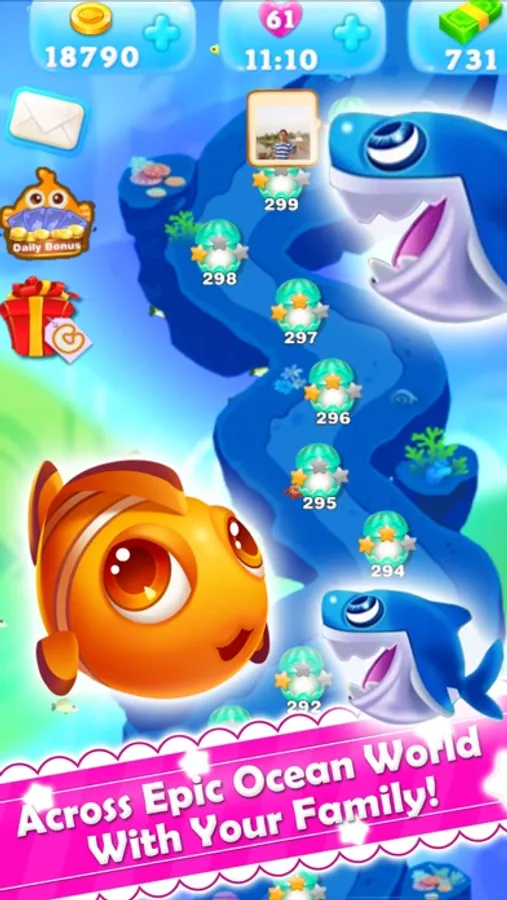 Switch and match fishes of the same type continuously to adventure in the amazing ocean world.
