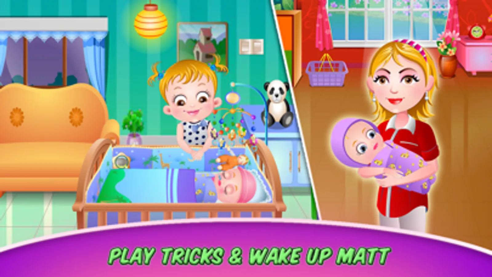 Help Baby Hazel to gently wake up her little brother. Make sure baby Matt does not cry but wakes up with a smile.