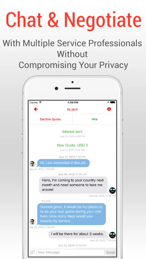 Message businesses and people, get instant responses to urgent requests. List your skills or business and earn money by accepting jobs from people who need your help. Do it as a freelance or as a full scale business. It's all up to you!