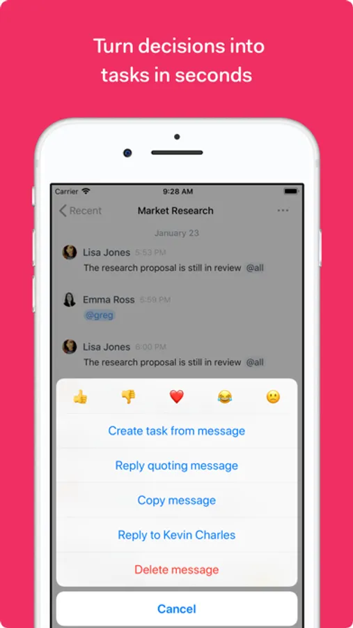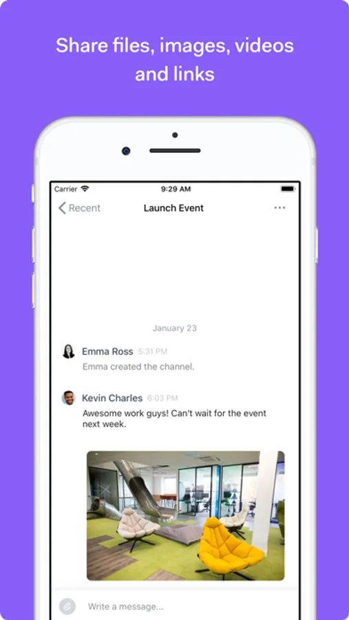 File sharing: Make decisions and give feedback with context by attaching files, images, videos and links that are relevant to the conversation.