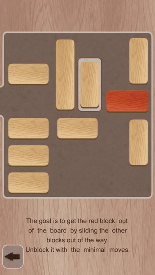 The goal is to get the red block out of the board by sliding the other blocks out of the way.