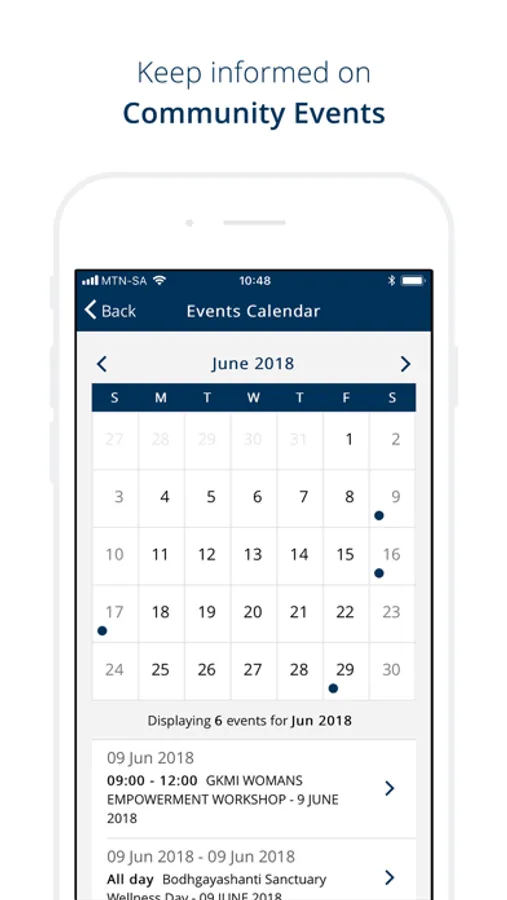 - events calendar showcasing all the events in your community