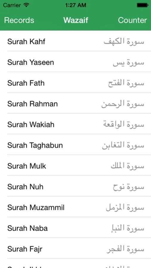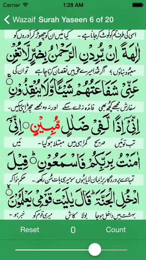 One can count the number of time each wazifa is being read. There is an individual counter available for TASBEEH. A special counter available in Surah Yasin for counts at MUBEEN.