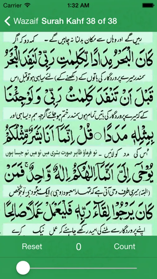 App is designed with sub-continent Arabic script. The translation is available in Urdu.