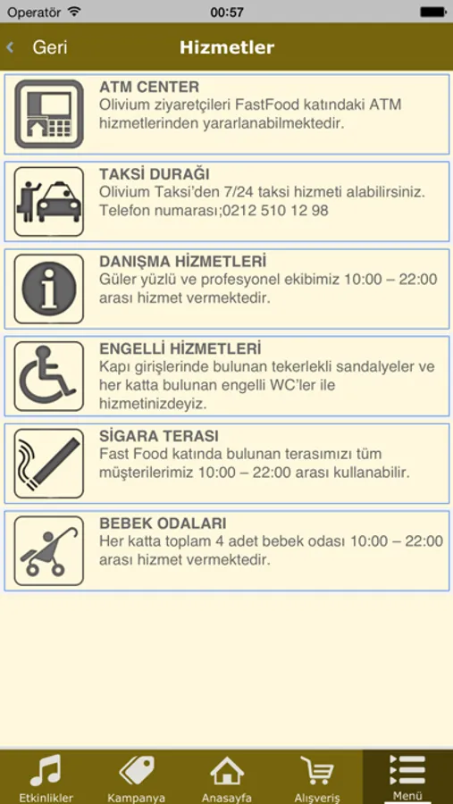Ücretsiz uygulamamızı indirerek Olivium Outlet Center'daki mağazalar, etkinlikler, özel kampanyalar gibi birçok bilgiye ulaşabilirsiniz..