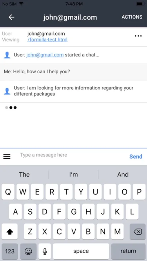 User/Agent is Typing a Message...: Now you don't need to wonder if the person you're chatting with is even on the other end! Formilla Live Chat keeps visitors and agents informed if the User or Agent is typing a message. This improves usability and makes conversations more enjoyable.