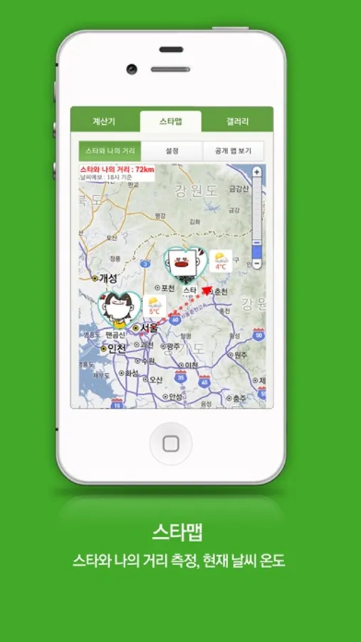 - The maps - The distance between fans and entertainers, the weather is also offered.