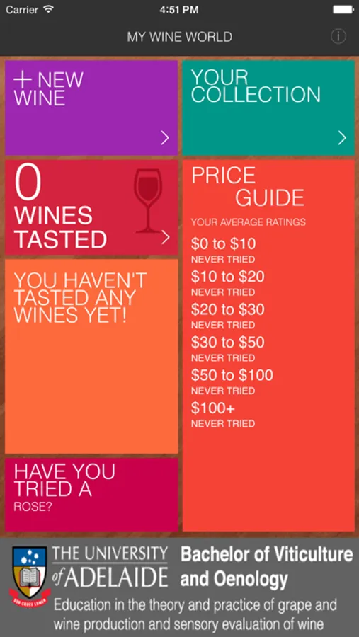 Whether you’re a wine novice or a seasoned oenophile, keeping track of your favourite wines can be a challenge. Traditionally, wine evaluation involves recording detailed observations and perceptions of wine sensory properties, with ‘tasting notes’ usually being recorded in a diary or journal. However, these can be cumbersome, messy and easily lost or damaged. My Wine World was developed by the University of Adelaide as a learning tool for winemaking and wine marketing students – i.e. to provide objective training in the evaluation of wine appearance, aroma, taste and mouthfeel.