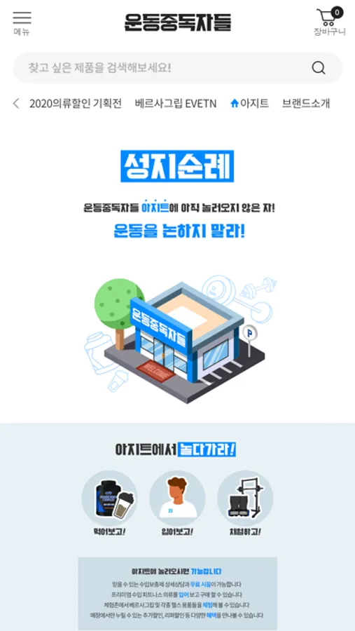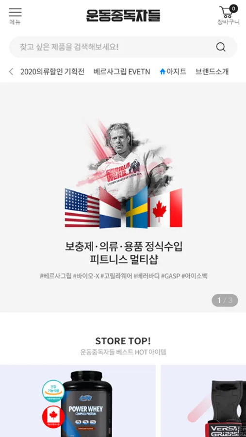 운동중독자들은 전세계 헬스보충제, 피트니스 의류, 용품을 전문 수입,유통,판매하는 피트니스 멀티샵입니다