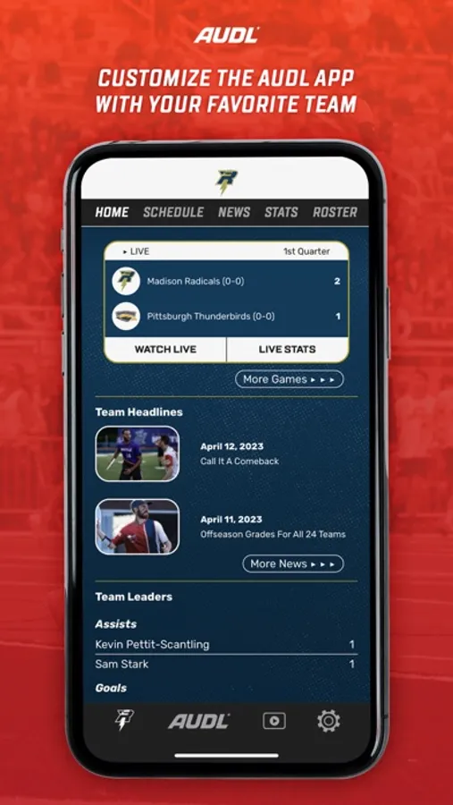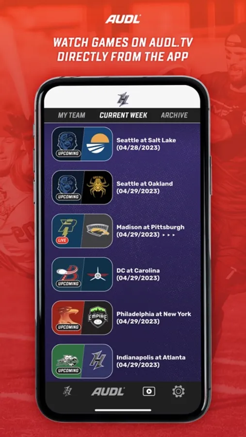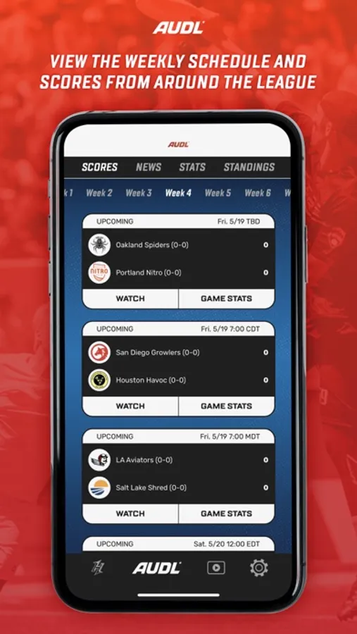 The Official AUDL Mobile App brings Ultimate right to your phone! Browse breaking news within the league, find out more about the current season's scores and standings, upcoming games, videos, stats, and more!