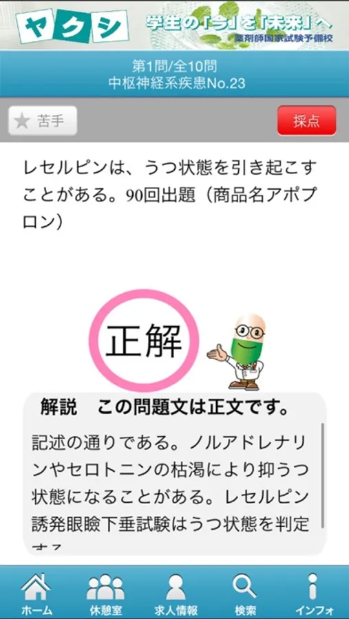 問題は全て○×を選ぶ問題です。解答を選択すると、正誤と解説画面が表示されます。