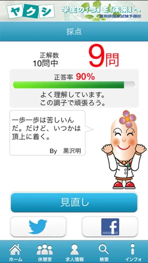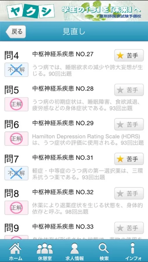「見直し」ボタンを押せば、どの問題を間違えたのか一目瞭然です!