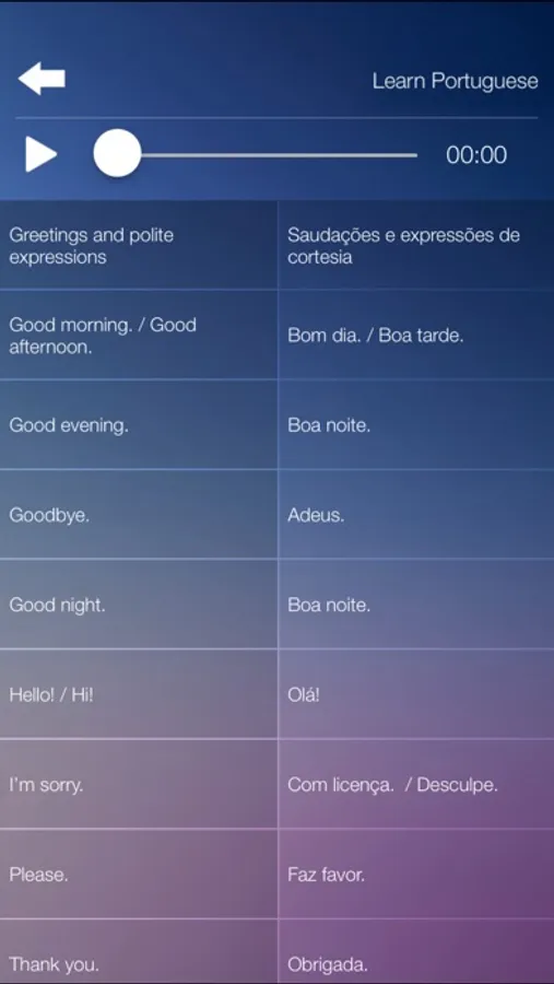 The most essential words and phrases of the Portuguese language, each with native speaker audio. Perfect travel app!