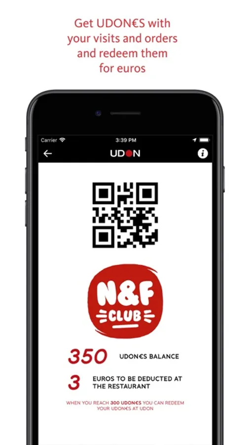 - Accrue UDON€S when you order from UDON menu and redeem them for euros off your bill.