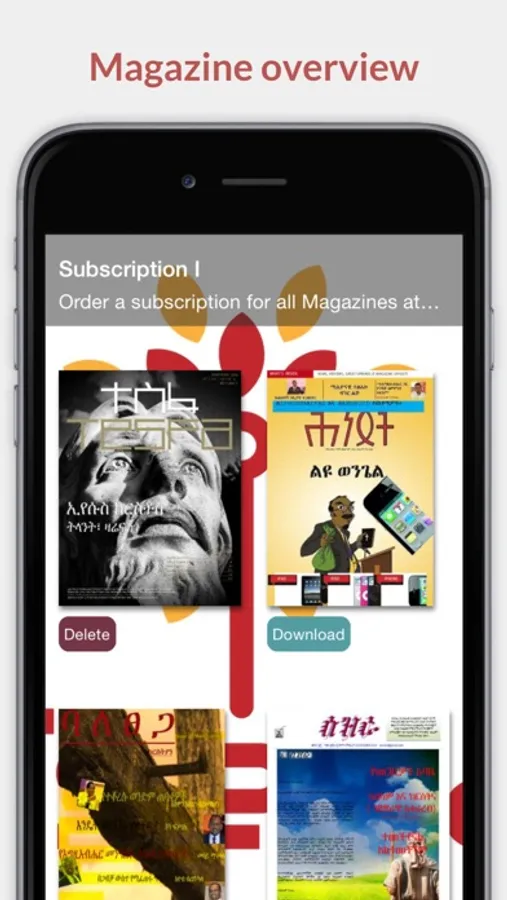 Subscribers will have access to The following Ten Magazines: Hintset, Baletsega-Christian, Fiker, Adamna Hewan, Tesfa, Selihom, Dunatos, Brehan, Negerekristyan and Giesem. In addition subscribers will receive several complimentary publications from our Partner publishers.