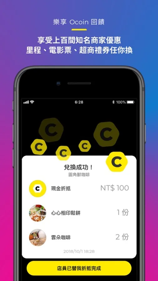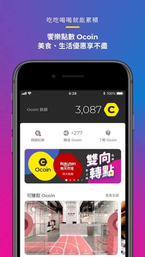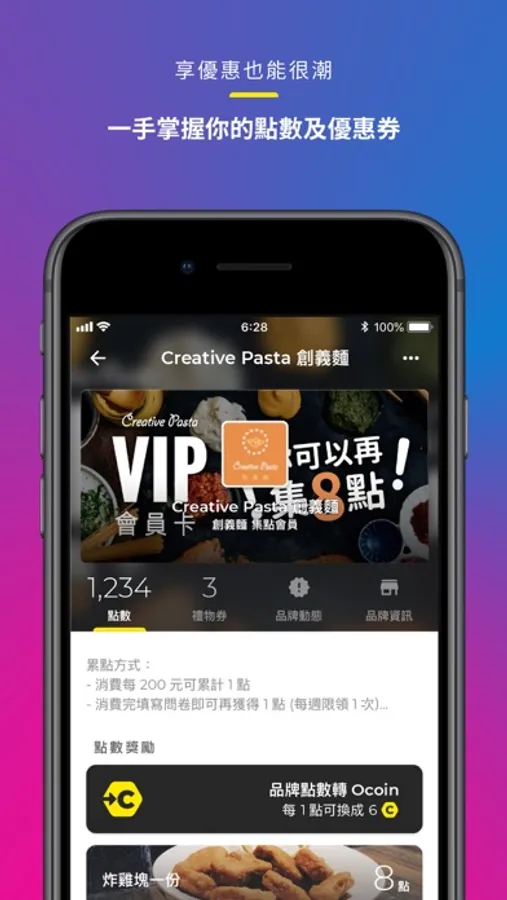 除了幫你輕鬆掌管各店家的點數與優惠,更首創跨品牌點數回饋計畫,讓你在各種優質「Ocard 特約店家」賺取你想要的回饋獎勵!