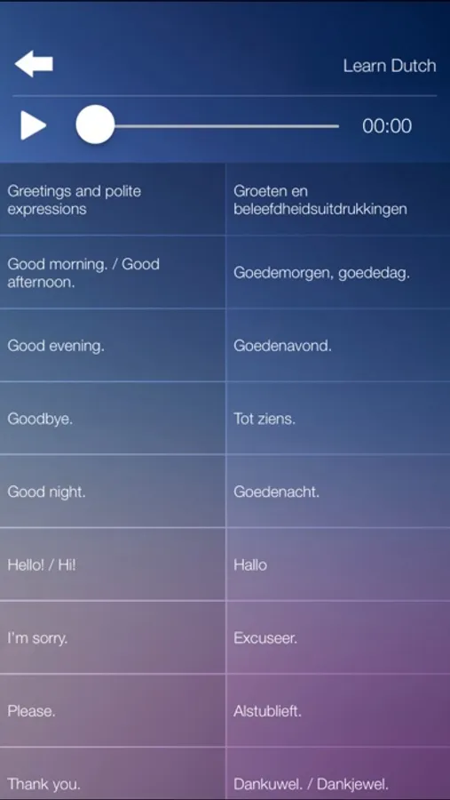 Learn DUTCH Free Fast and Easy - the most essential words and phrases of the language, each with native speaker audio. Perfect travel app! All audio is downloaded to the device and accessible even in airplane mode or without expensive international roaming fees.