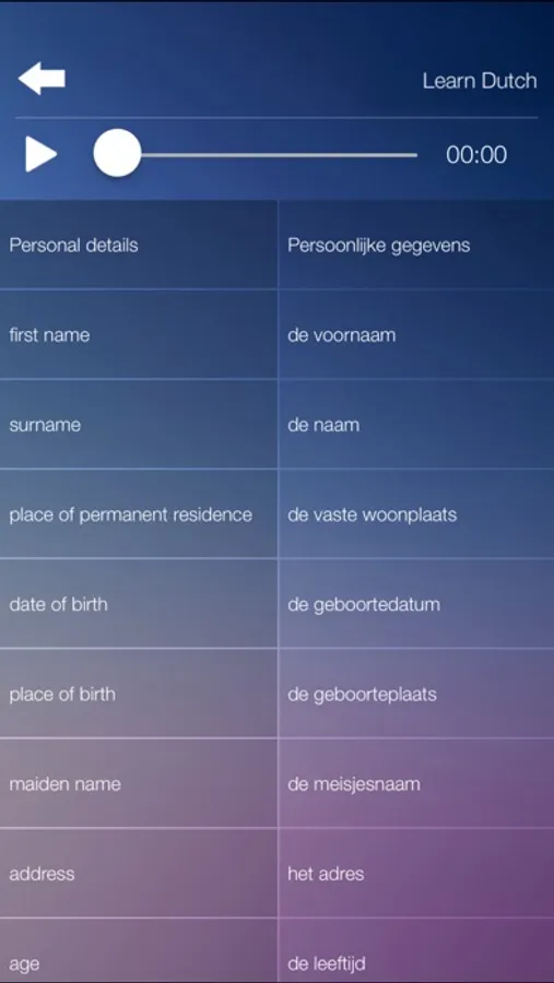 * App is for people who know English and want to learn the basics of DUTCH language.