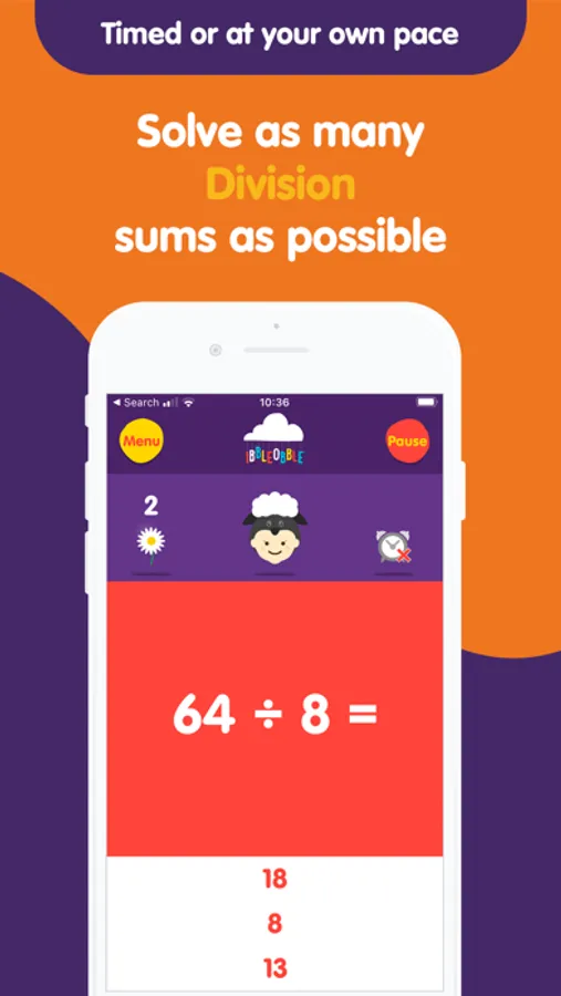 Division with Ibbleobble is fun educational math game suitable for children aged 5 - 8, perfect for those studying in the 1st and 2nd Grade. This app is the perfect educational app for both boys & girls and encourages the development of mental arithmetic. While it helps kids learn how to divide it also helps them gain a feel for numbers and the relationships between them.