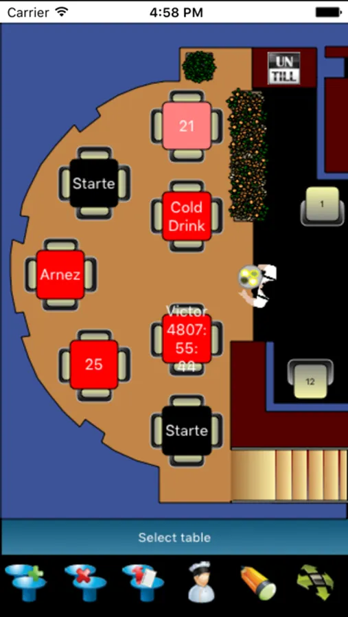 Terminal provides basic graphic API for displaying POS screens and interacts with the user. unTill allows remote control of POS.