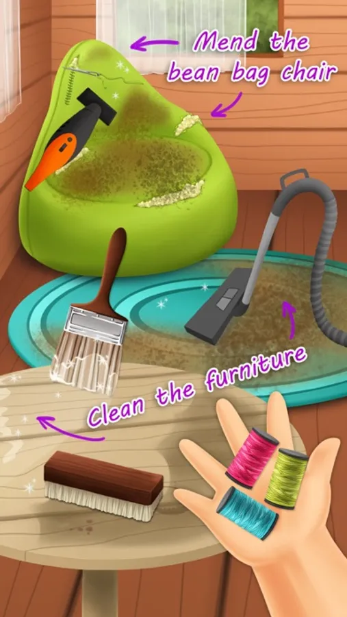 - Collect trash, vacuum the floor, repair the bean bag and wipe the table in the TREEHOUSE!