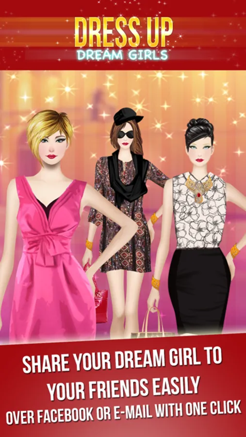 - Share your Dress Up Dream Girls to your friends easily over Facebook or E-mail with one click