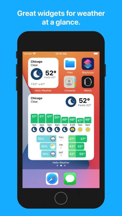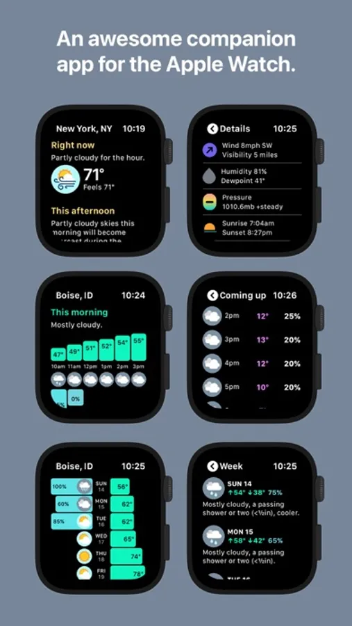 Our main app is only the tip of the iceberg—we’ve got excellent customizable Home Screen widgets for quick access to all the forecast info you need.