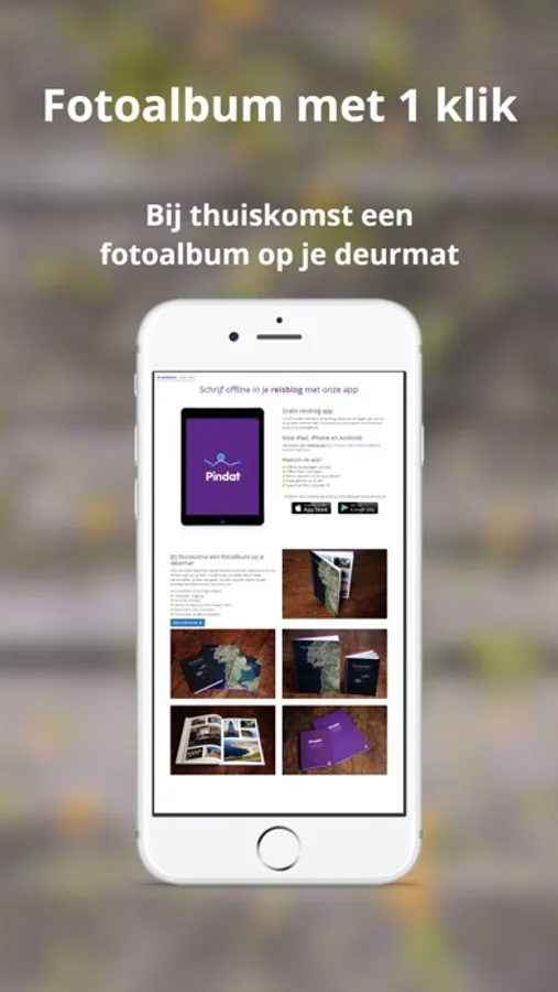 Met Pindat kun je op een leuke unieke manier jouw reisverhalen bijhouden en delen met familie en vrienden. Met behulp van deze kun je offline reisverslagen schrijven, en deze uploaden op een moment dat het jou uitkomt. Iedereen kan zo gemakkelijk tijdens jouw vakantie meegenieten van alle foto's en verhalen. Bij thuiskomst kun je van alle reisverslagen automatisch zonder gedoe een mooi album laten maken en drukken.