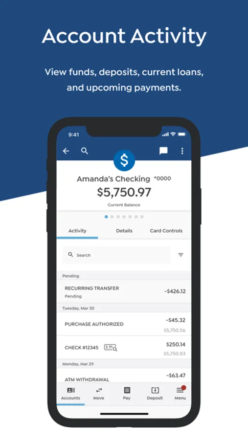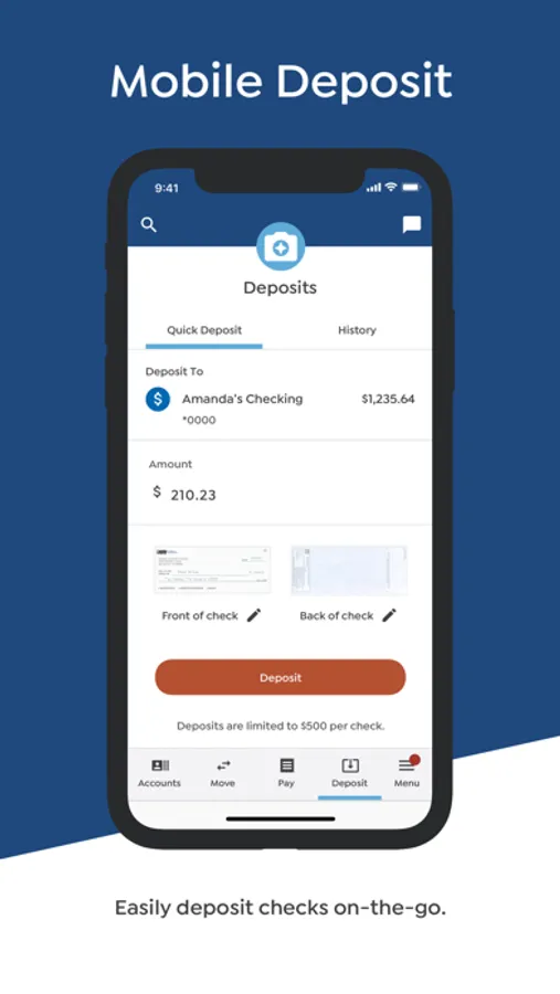 • Deposits - Use your phone’s camera to deposit checks