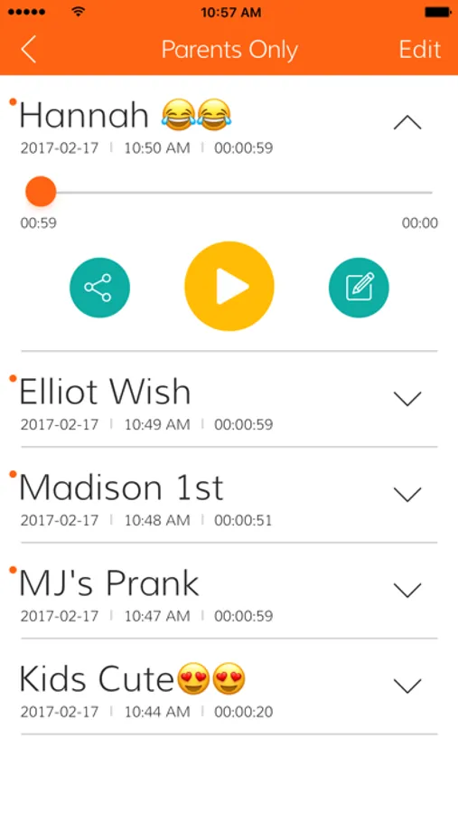- Each conversation is voice-recorded for parents to save it to cameral roll and share via iMessage, Facebook, and other popular social sites
