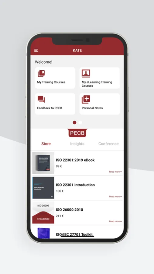 KATE is an application developed by PECB whose primary objective is to grant digital access to PECB training course materials to multiple PECB stakeholders. It is a freeware application compatible with multiple operating systems and it supports all PECB's training course formats including eLearning training courses.