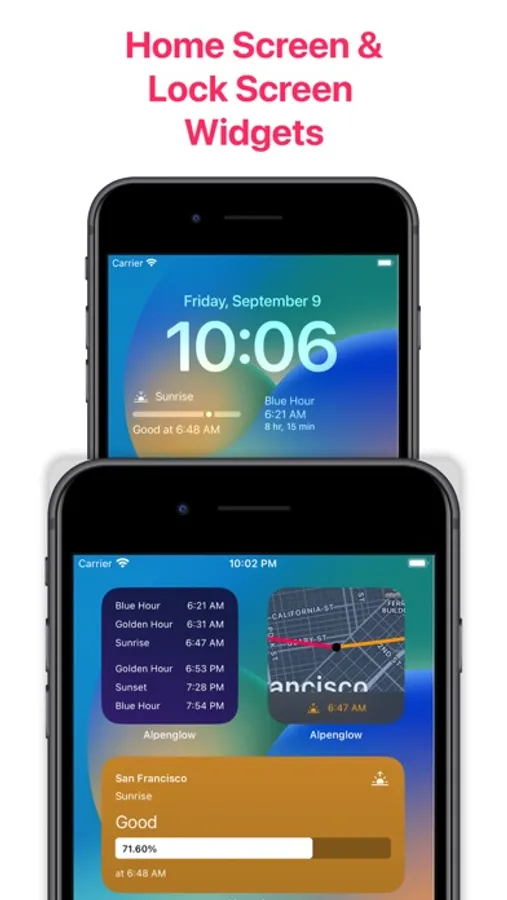 • Sunrise, Sunset, and Magic Hour Times Home Screen Widget.