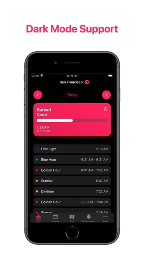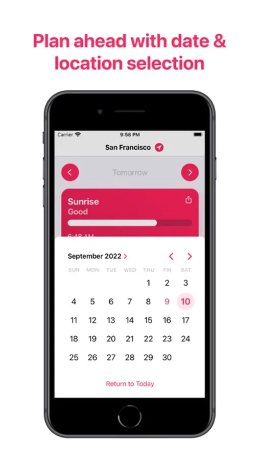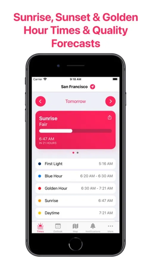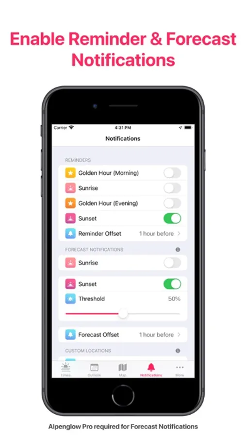 We've all caught the last glimmer of a beautiful Sunrise or Sunset, missing out on a spectacular photo opportunity. Alpenglow tries to make that a thing of the past with both reminder notifications and Sunrise/Sunset quality forecasts.