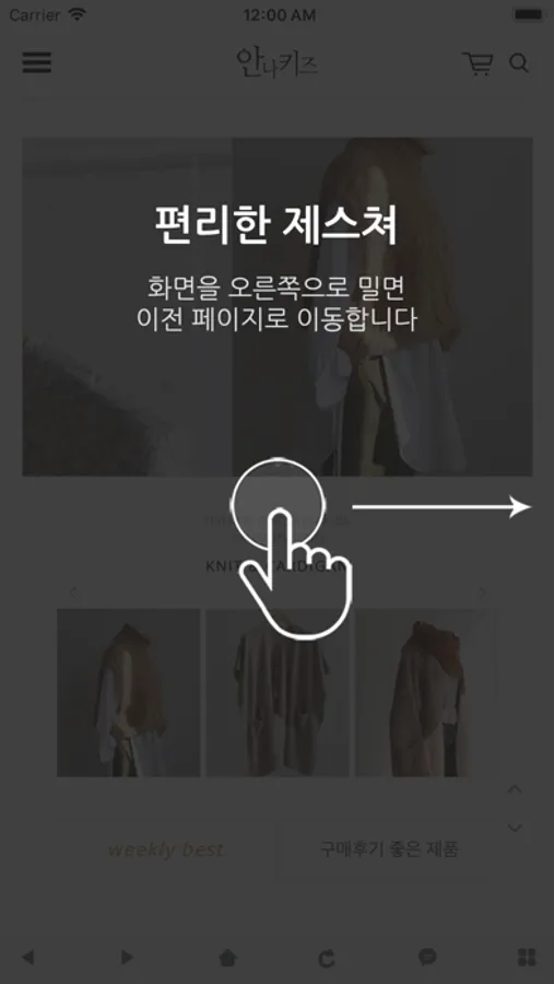 구매했던 상품을 일일이 찾을 필요 없이 앱에 접속하면 자동으로 뜨는 간편리뷰 기능으로 편리함을 더했습니다.