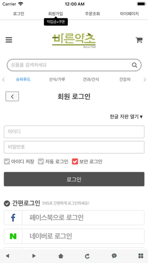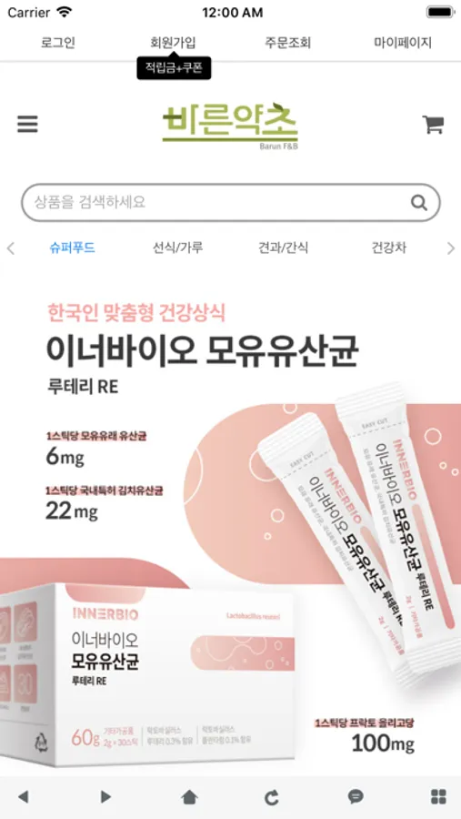 다양한 건강식품을 건강식품 전문기업 바른약초의 앱을 통해 만나보세요. TV에서 몸에 좋다고 나오는 건강식품들, 지인이 추천해준 건강식품들 이젠 어디서 살지 고민하지 마세요. 바른약초 앱을 통해 쉽게 검색하고 구입하세요. 스마트한 고객님들을 위해 준비한 스마트한 앱. 다양한 기능과 풍부한 혜택을 꼭 확인하세요.