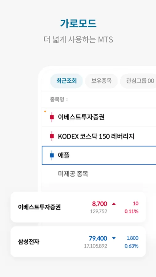 4. 관심종목, 차트 등 주요 화면에서 넓은 시야 확보가 가능한 ‘가로모드‘ 제공