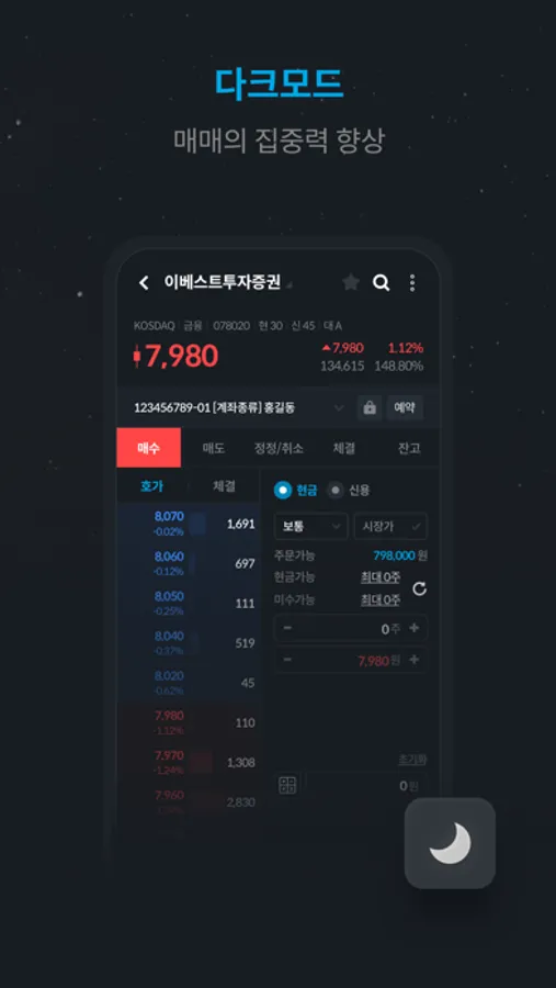 3. 이용자의 시각을 보호하고, 매매에 대한 집중력을 향상시키는 [다크모드] 제공