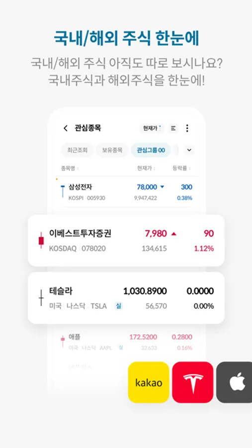 6. 국내/해외주식(미국주식/홍콩주식/중국주식)을 통합해 관심종목, 현재가, 주문화면에서 이용 가능