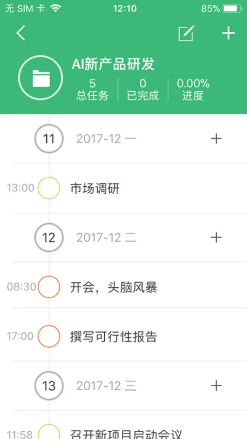 高效Todo还采用了时间轴的形式来组织事情,把事情按照时间先后顺序排列,连接历史和未来。