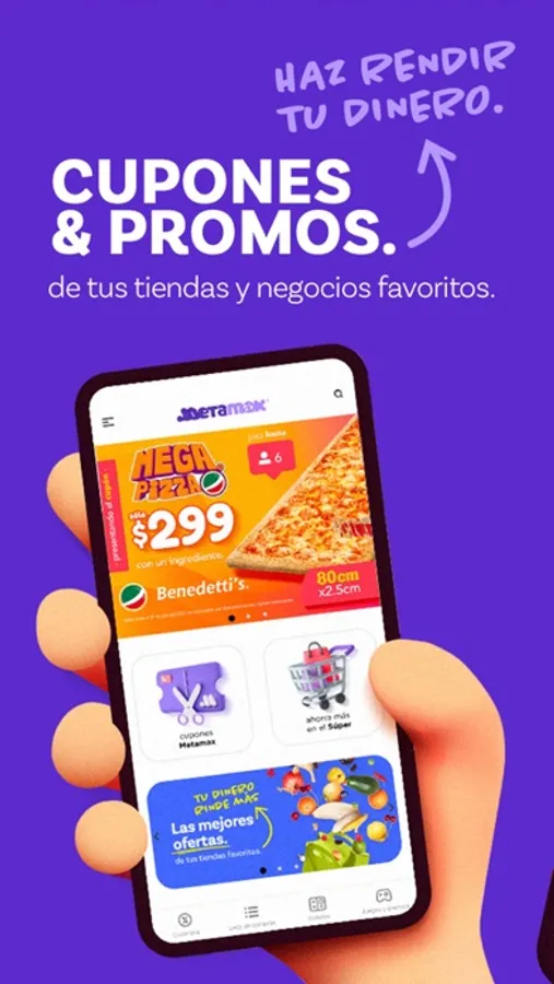 Cuidamos tus datos, por lo que esta aplicación muestra solo los cupones de negocios y del súper ubicados en tu ciudad (al descargar la aplicación y aceptar la función GPS).