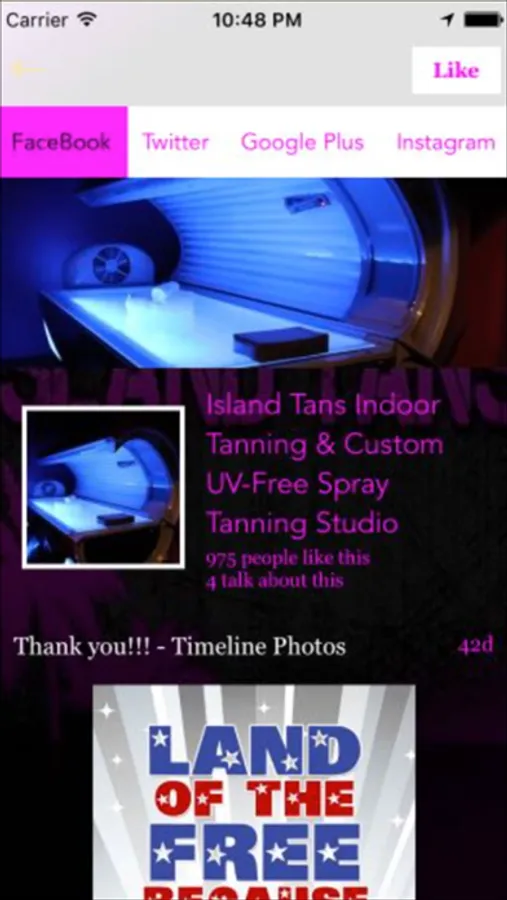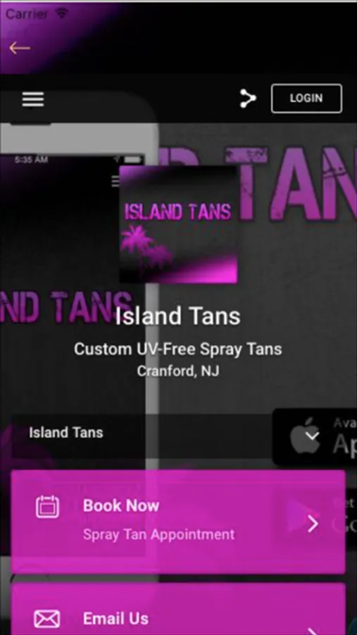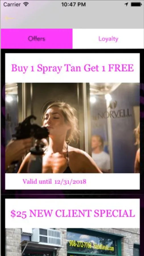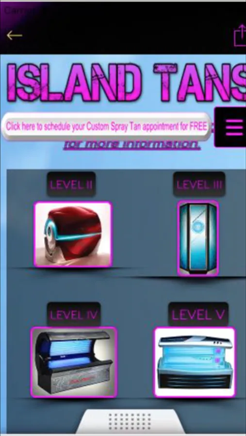 This app provides business information, special offers, spray tan appointments, shopping and more.
