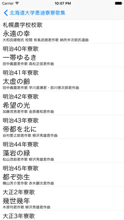 It also includes cheering songs of Hokkaido University and club songs of some club activities according to the collection of dormitory songs published by the Keiteki-ryo dormitory autonomy association.