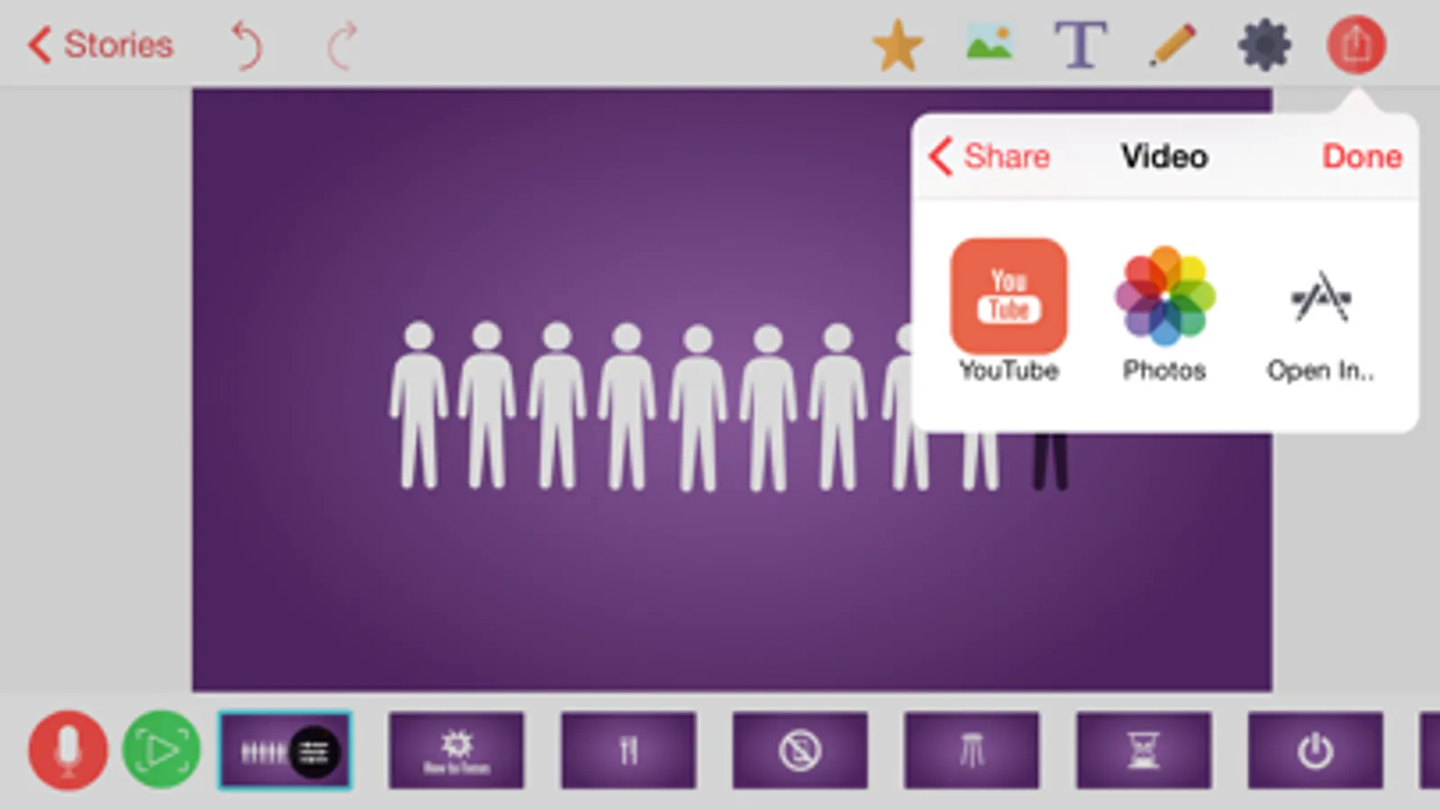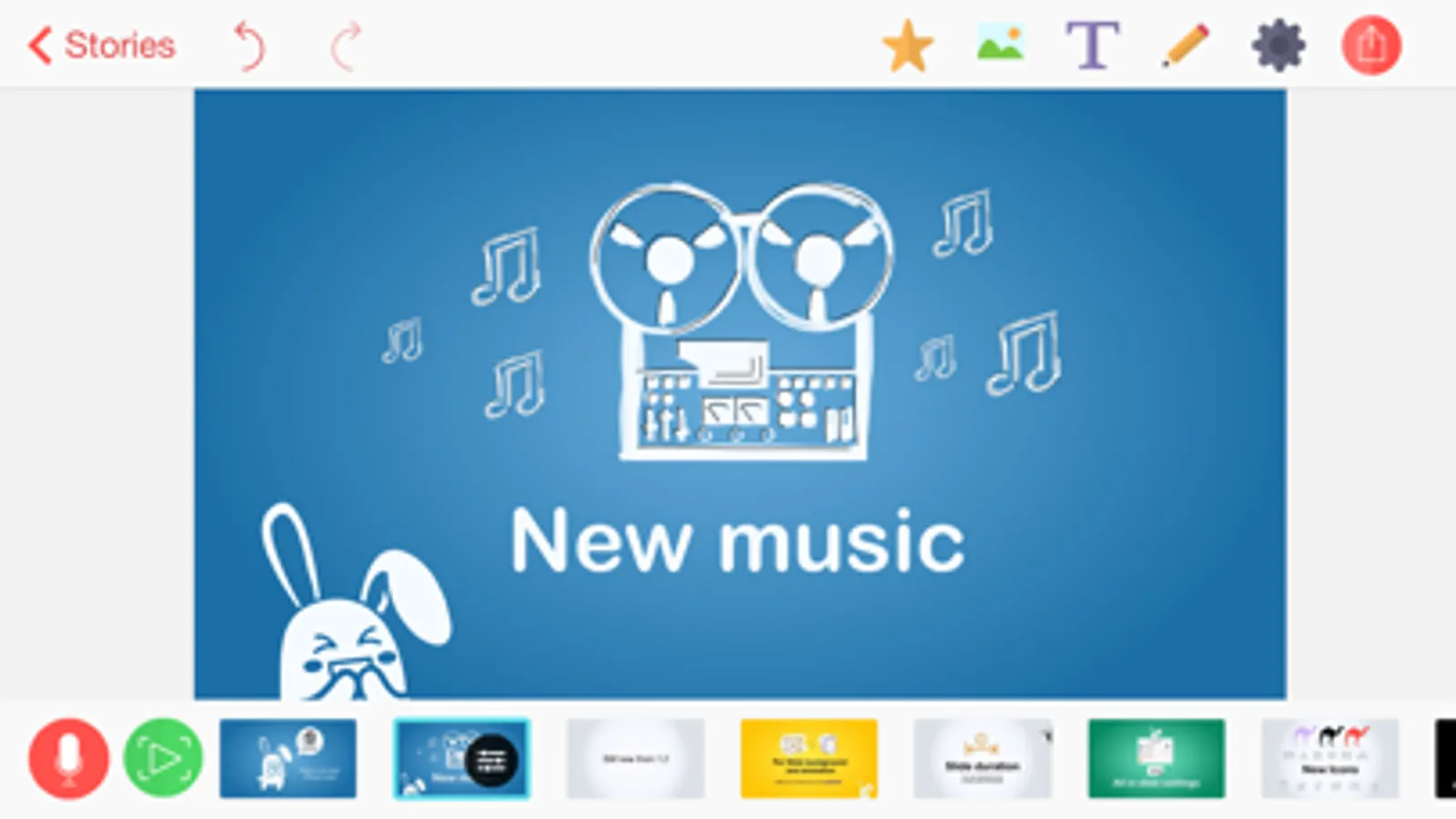 From the idea to a Youtube or Facebook video in just a few minutes! Make some slides by dropping in a few vector shapes. Add some text or images. Record your voice to each slide. Choose cool background music and set the mood of your story. Your slides' content will be animated automatically!