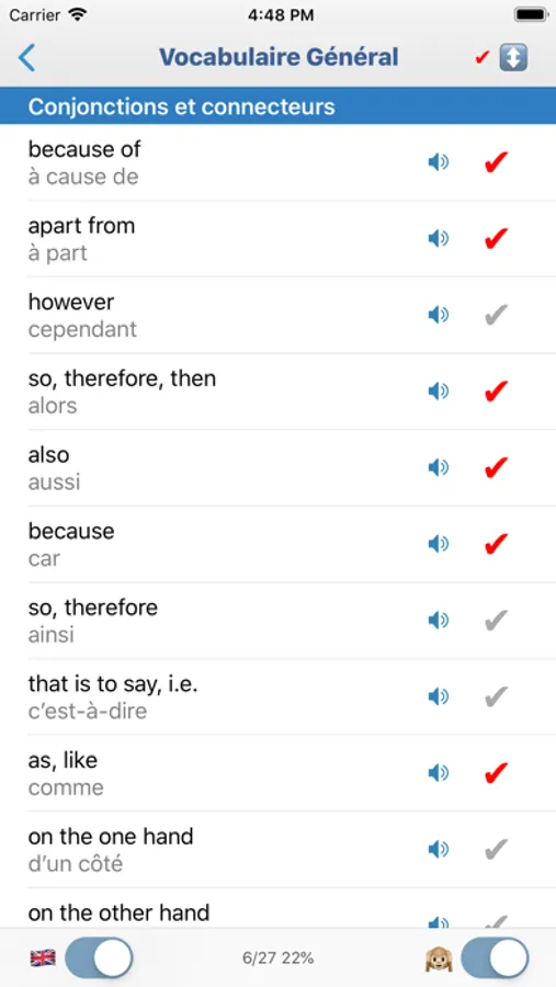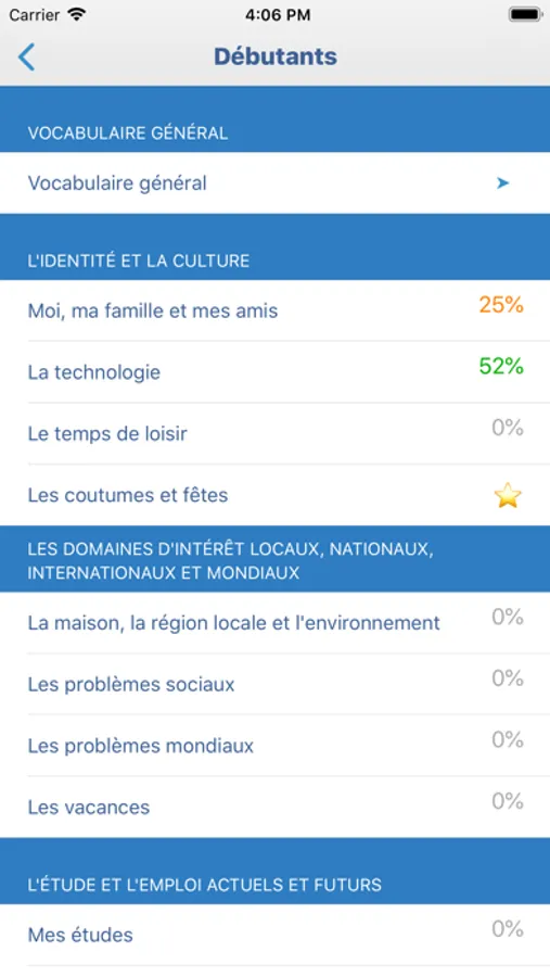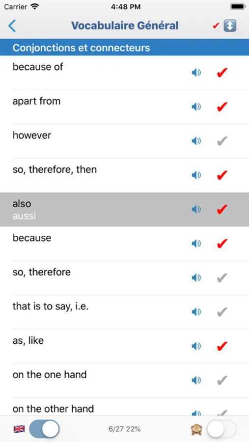 Learn 12 topics and over 1600 of the most important words (easier words first).