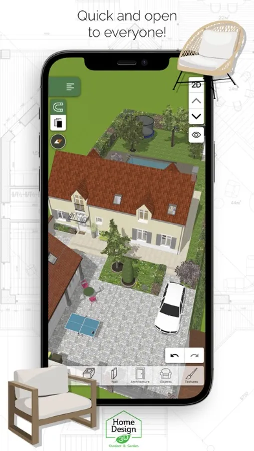 With its new 3D rendering, Home Design 3D Outdoor will help you fulfill your design dreams quickly and easily, whatever your idea: design your garden, come up with your ideal outdoor space, create a play area, organize your open-air wedding and more!