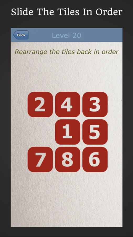 Number Tile: The Slide Puzzle is a 15-slide puzzle game where you have to rearrange the numbers back into their original order. It may seem easy but as you progress through the levels it becomes more challenging. Contains UNLIMITED levels of gameplay with Game Center compatibility.