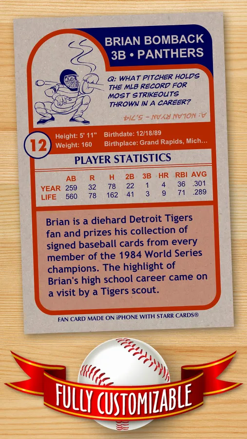 Starr Cards has custom stat formats for each player position, and even a special landscape-mode for producing team cards. No detail is left unattended — each and every card is sure to be a collectable keepsake.