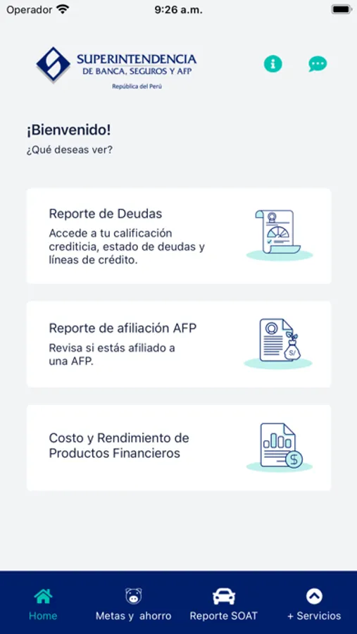 A través del APP SBS puedes tener el control de tus finanzas. Revisa fácilmente tu Reporte de Deudas, el tipo de cambio, tu Reporte de AFP; además podrás ingresar reclamos y consultas ante la SBS. Y para mantener tus finanzas controladas, ponemos a tu disposición el módulo de Metas y Ahorro en donde podrás revisar tus gastos, ingresos y fijar tu meta de ahorro.